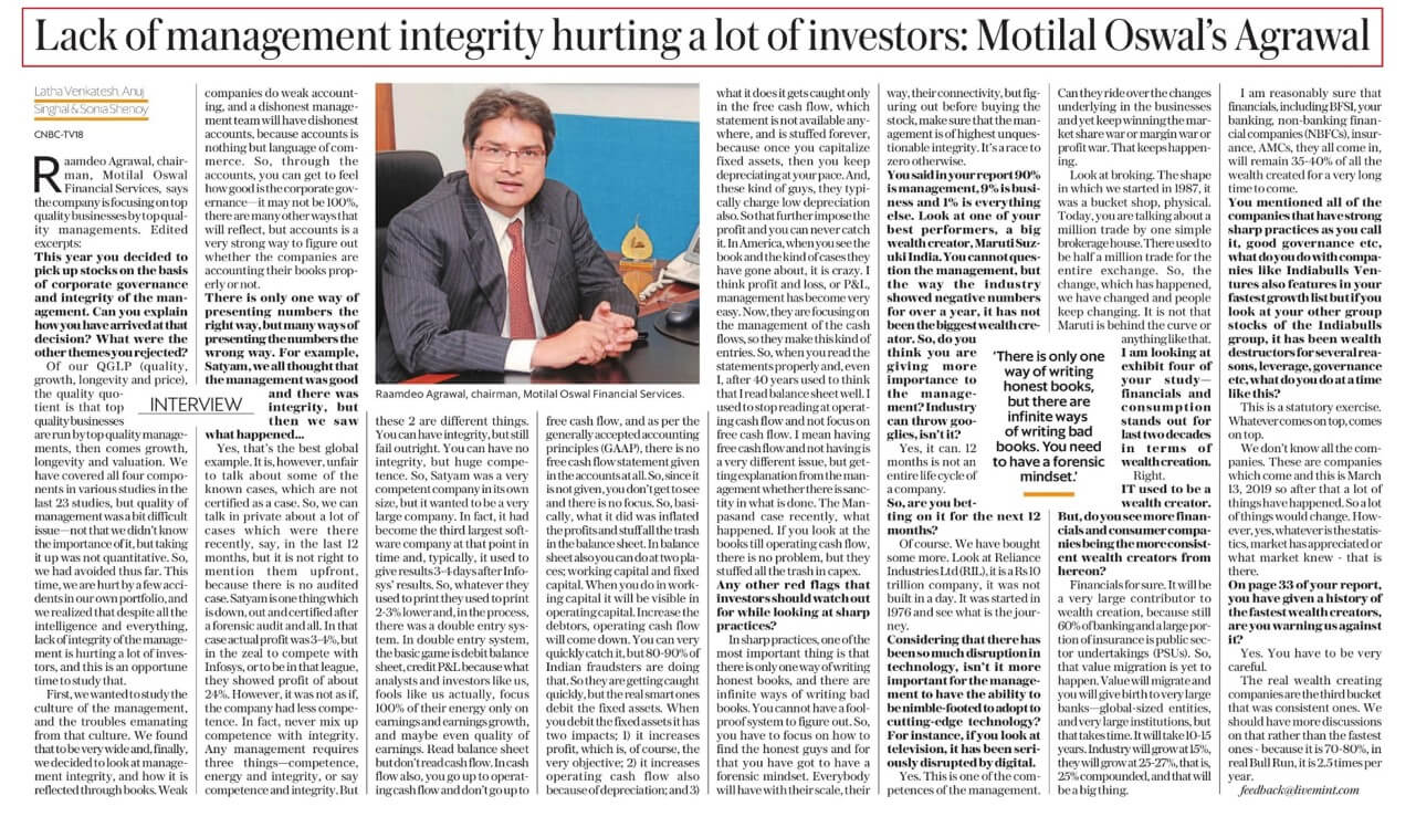 Buy stocks where managements have unquestionable integrity, says Raamdeo Agrawal of Motilal Oswal |