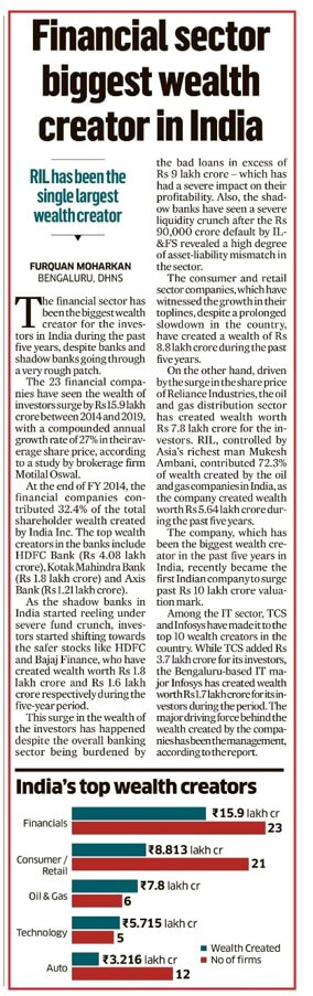 Top 100 Firms Created Wealth Worth Rs 49 Lakh Cr During 2014-19 |
