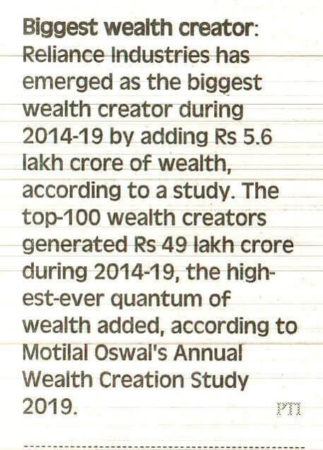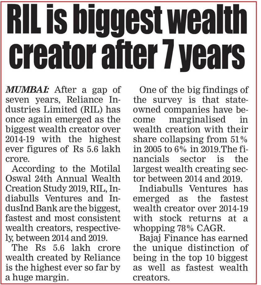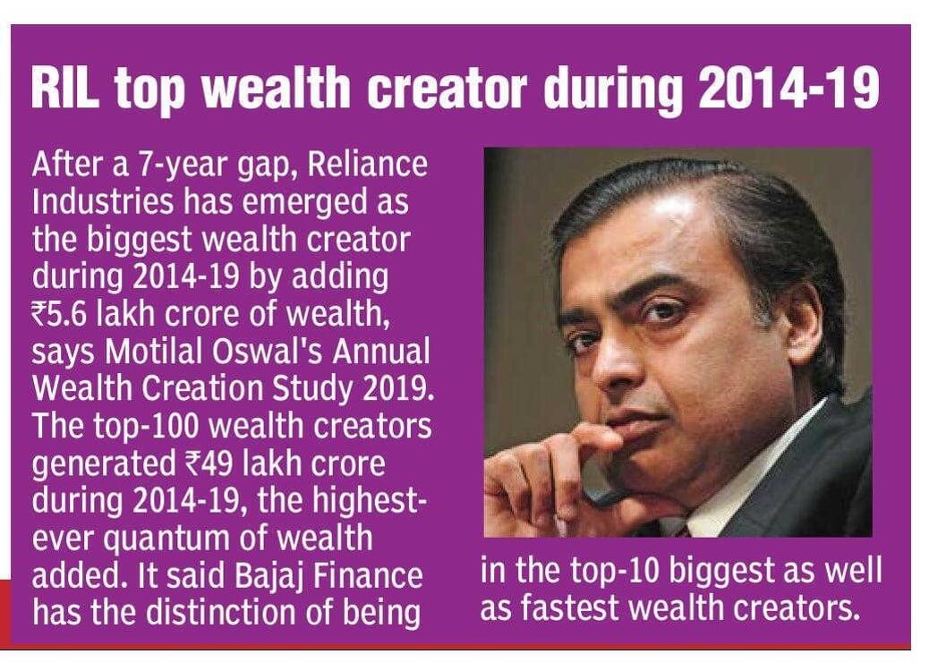 RIL is top wealth creator in 2014-2019: Motilal Oswal study |