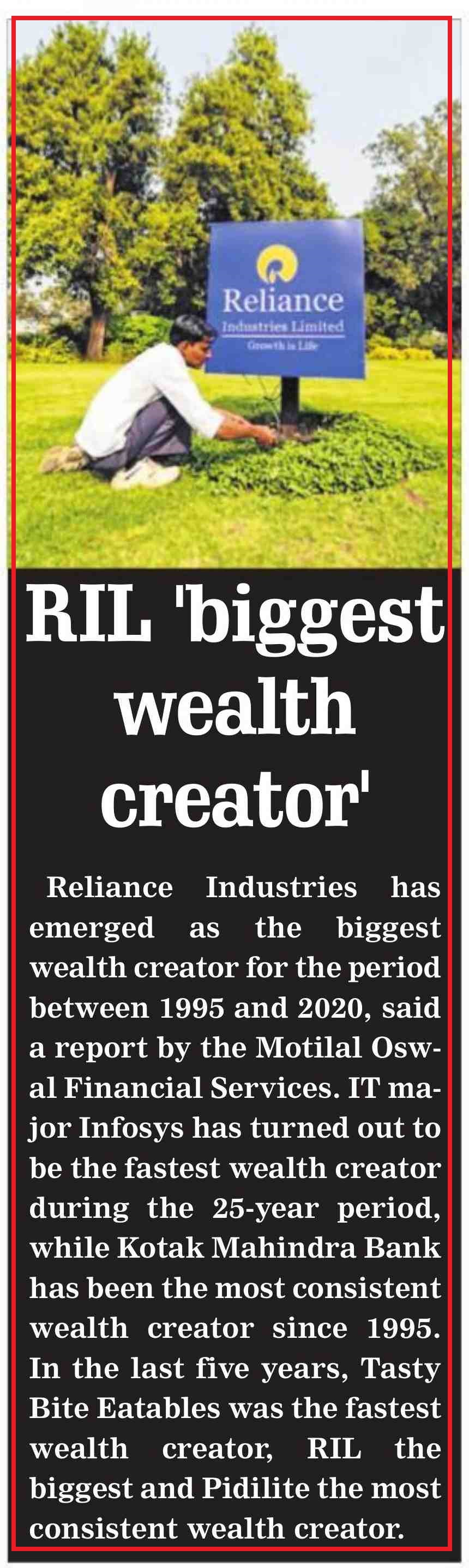 Infosys fastest wealth creator in 25 years, Reliance biggest: Motilal Oswal |