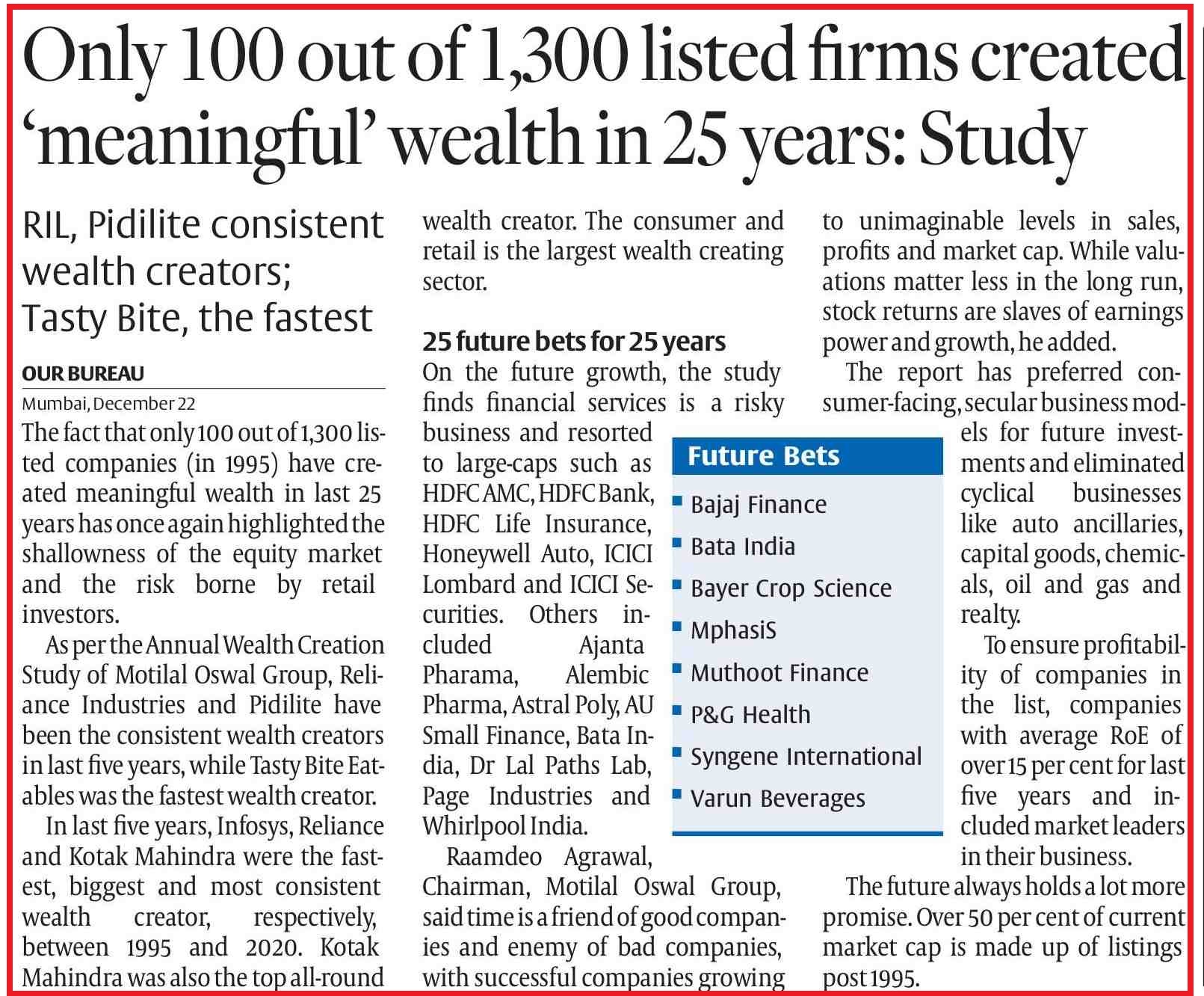 Only 100 out of 1,300 listed firms created ‘meaningful’ wealth in 25 years: Study |