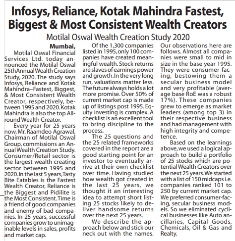 Motilal Oswal 25 Annual Wealth Creation Study 2020 |