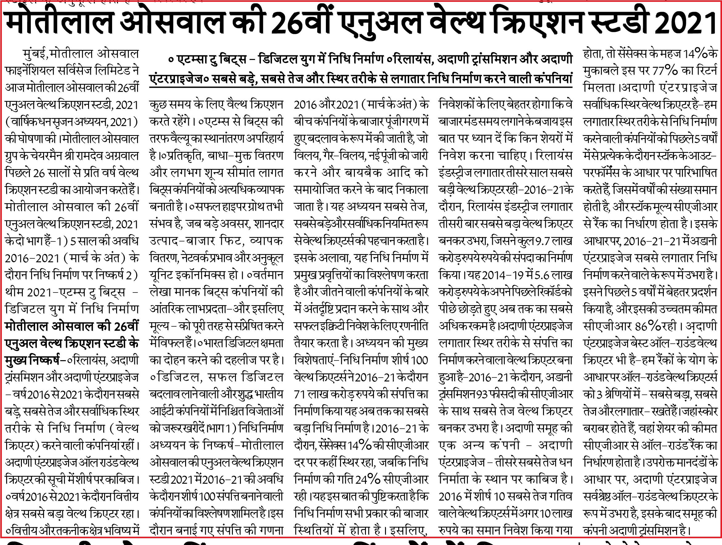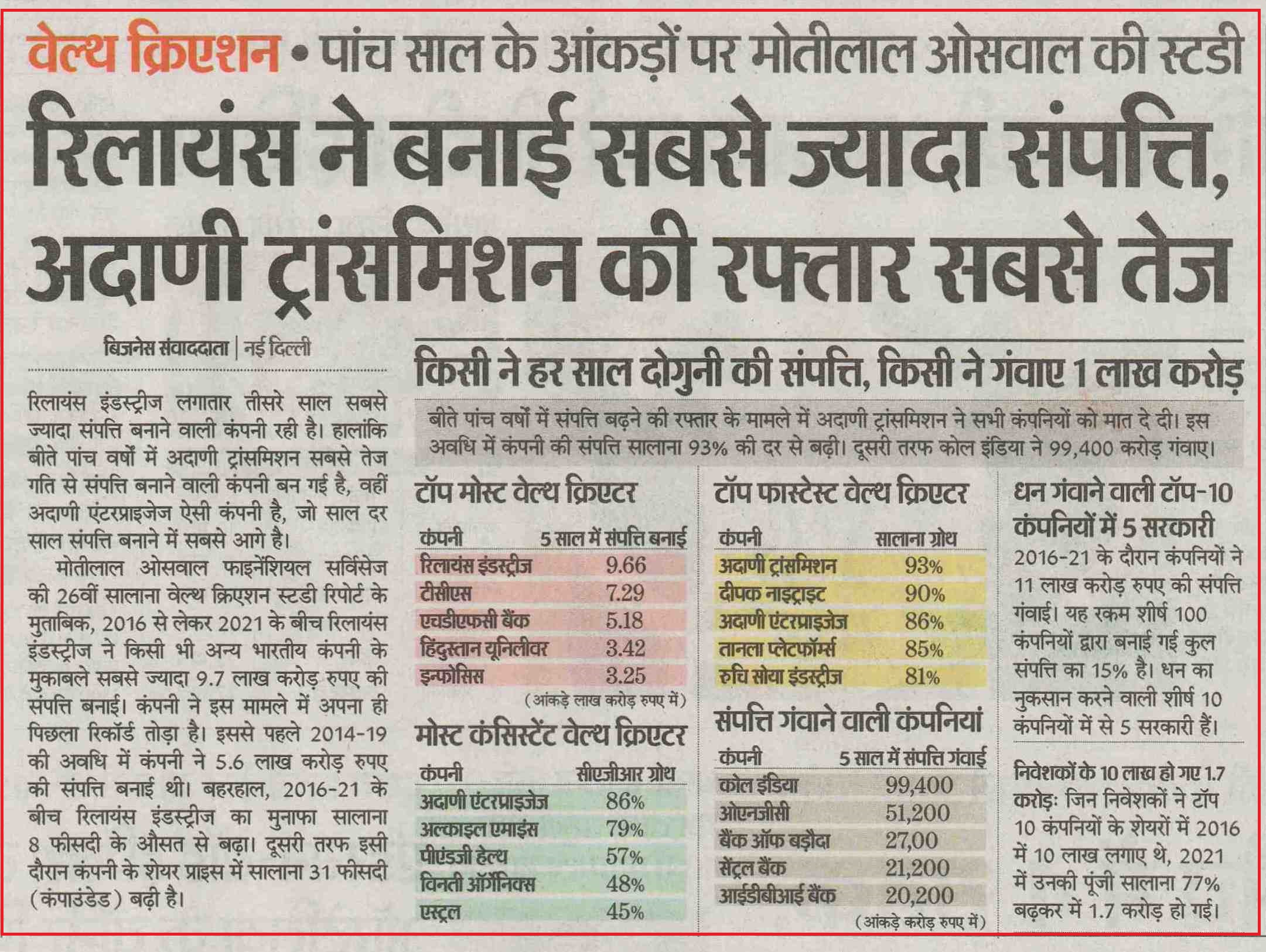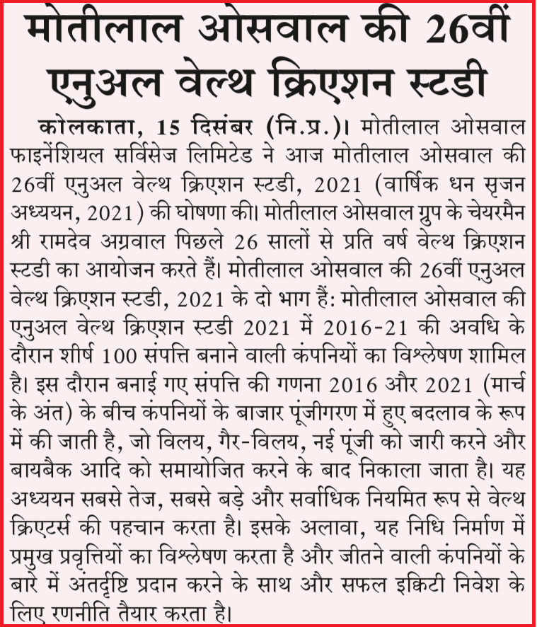 Motilal Oswal Annual Wealth Creation Study - ABP News |