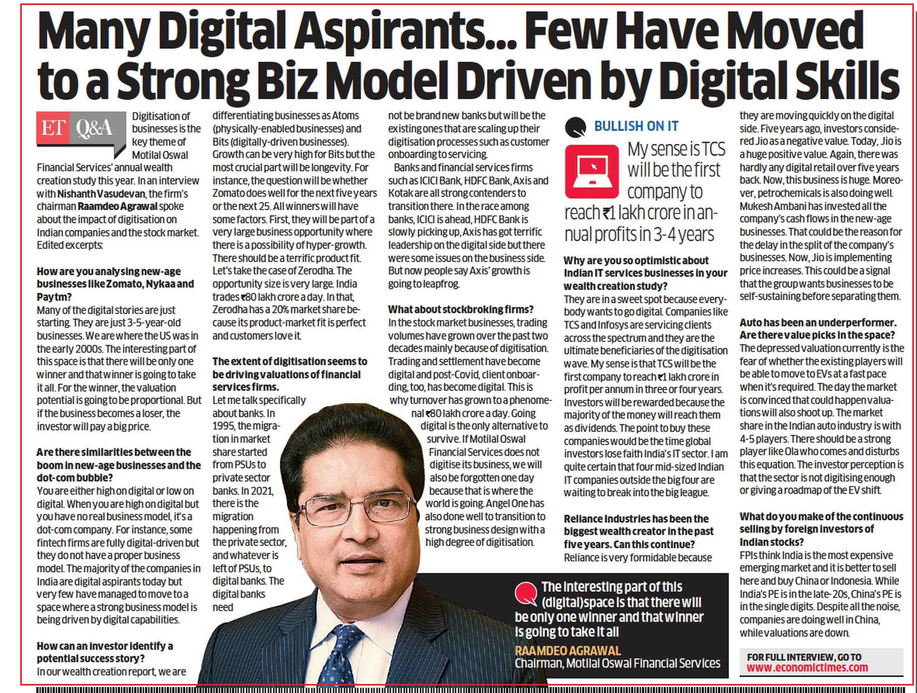 Motilal Oswal 26th Wealth Creation Study: Here's how investors should value digital companies |