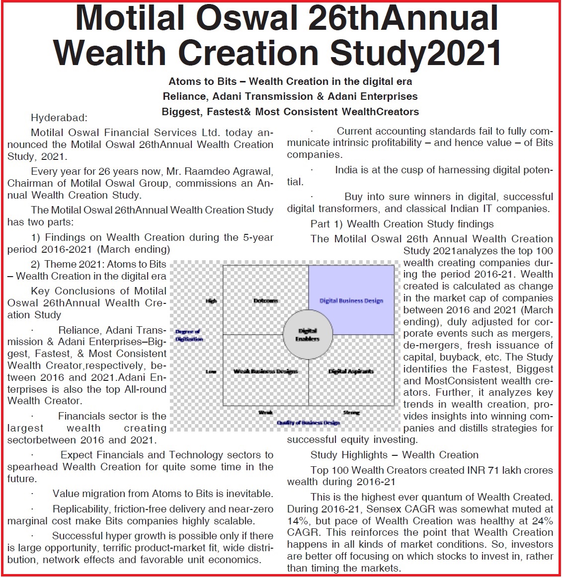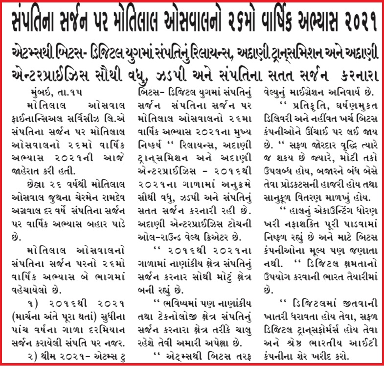 Motilal Oswal 26th Annual Wealth Creation Study 2021 |