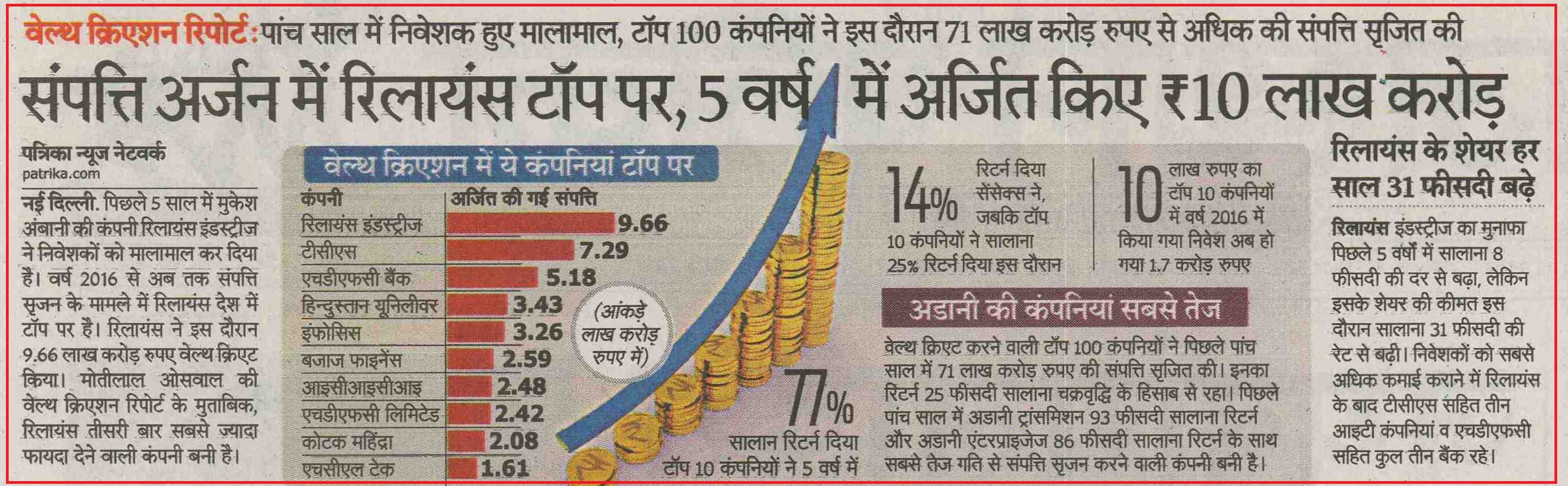 Investors became rich in five years: Reliance increased the wealth of investors the most, Adani Transmission continued to be the better company |