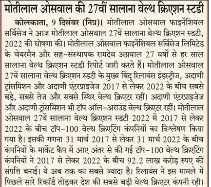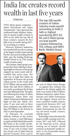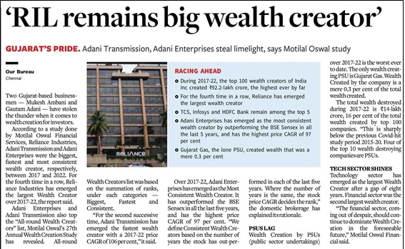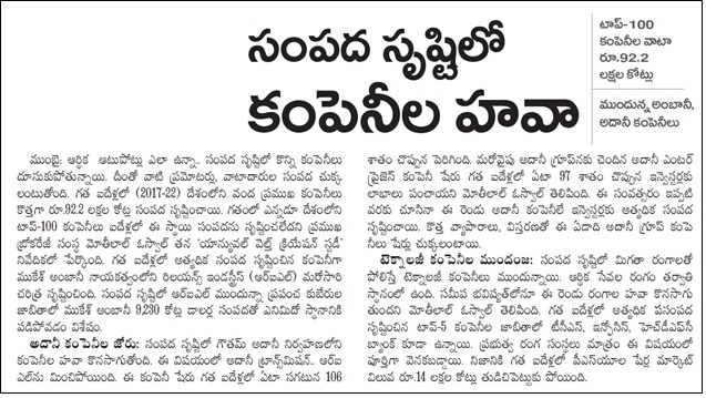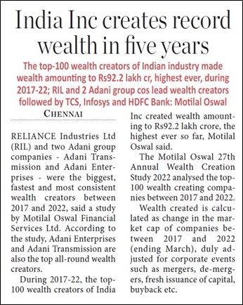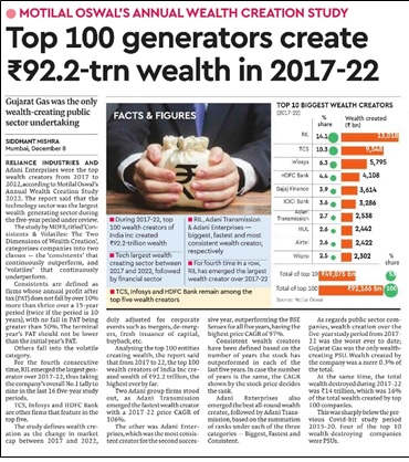 Top 100 generators created wealth of Rs 92.2 trn in 2017-22 |