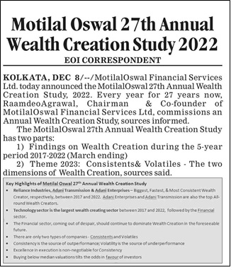 RIL, Adani Enterprises are the largest and most consistent wealth creators: Motilal Oswal |
