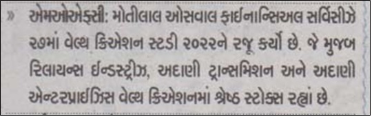Reliance Industries Ltd, 2 Adani group companies fastest wealth creators: Motilal Oswal |