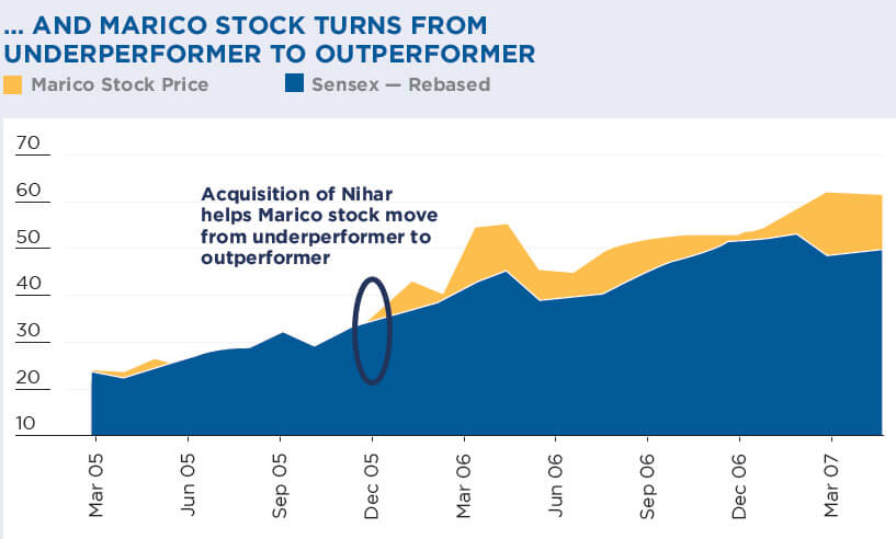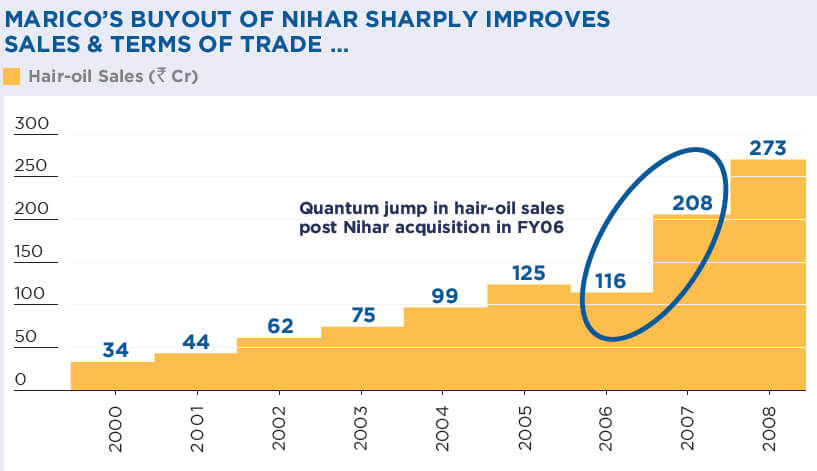 Since acquiring Nihar from HUL in 2006, Marico consolidated its position in the branded coconut hair-oil market, significantly improving its terms of trade with distributors and customers.